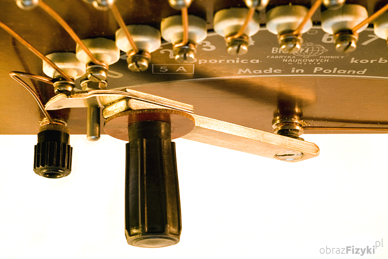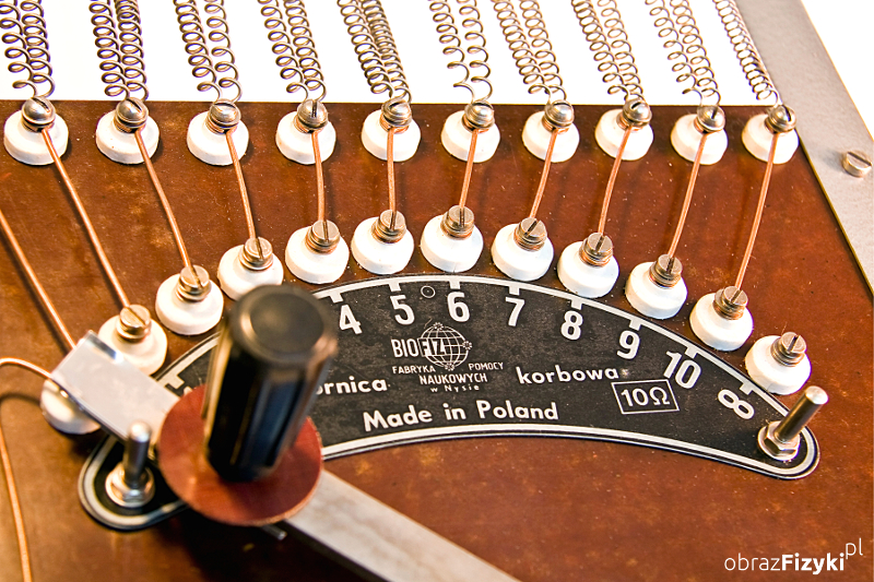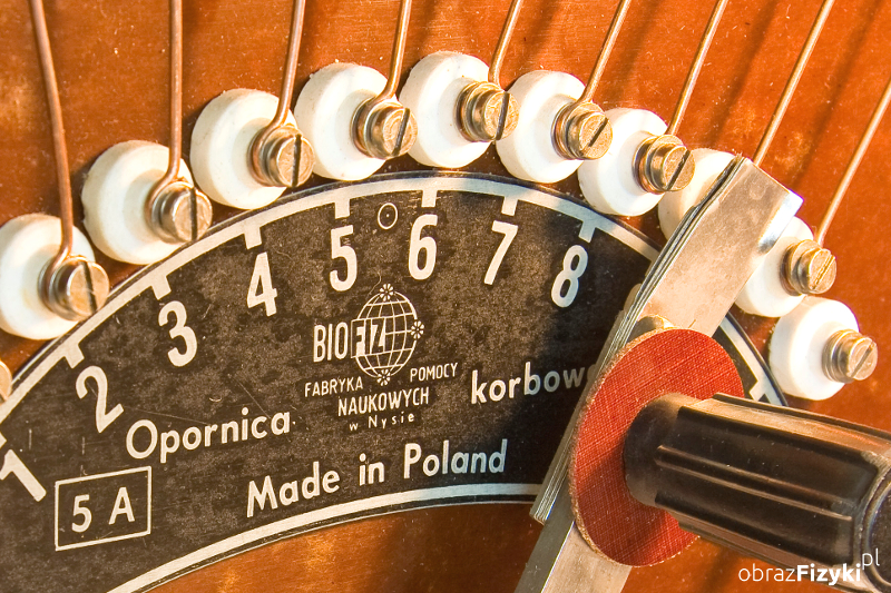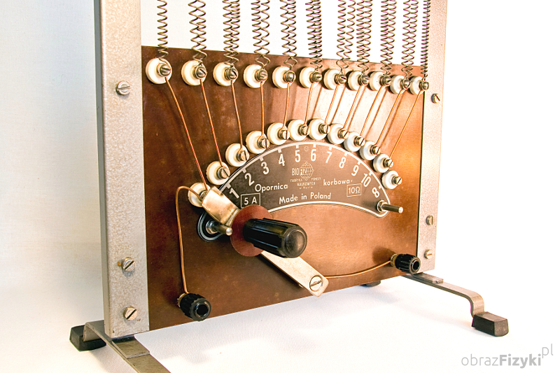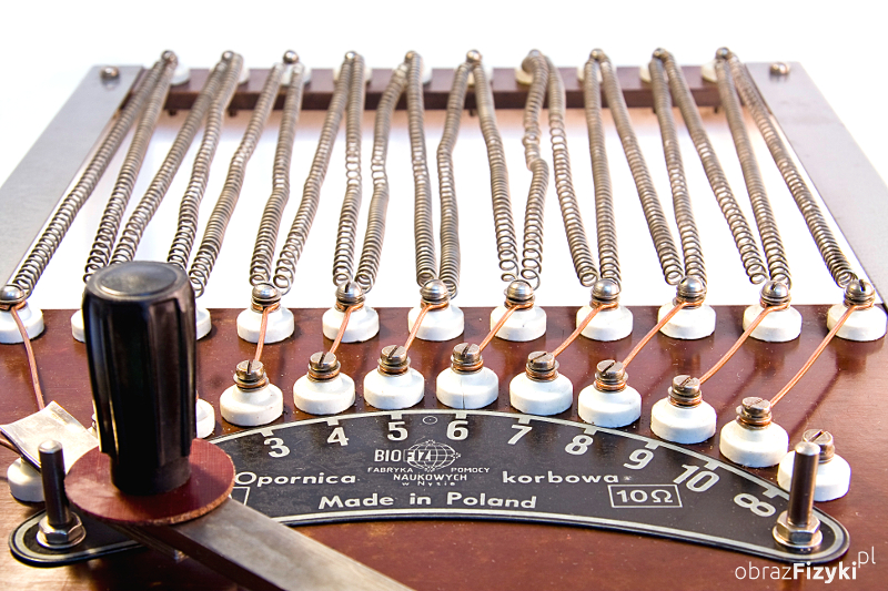 Im dłuższy drut tym większy opór stawia on przepływającemu przez niego prądowi. Fakt ten wykorzystano w konstrukcji opornicy korbowej. Opornica korbowa składa się z metalowej ramy, do której przymocowano dwie płyty izolacyjne. Pomiędzy płytami rozpięty jest spiralny drut oporowy. Na dolnej płycie drut jest przykręcony śrubami kontaktowymi ułożonymi wzdłuż łuku. Ślizgacz korbowy przesuwający się po tych śrubach zamyka obwód przez różne długości drutu oporowego. W ten sposób w obwód włączane są kolejno różne opory. Całkowity opór przyrządu to 10 omów, a dopuszczalne obciążenie wynosi 5A. Duże rozmiary i przejrzysta budowa sprawiają, że przyrząd bardzo dobrze nadaje się do demonstracji związanych z obwodami elektrycznymi.
