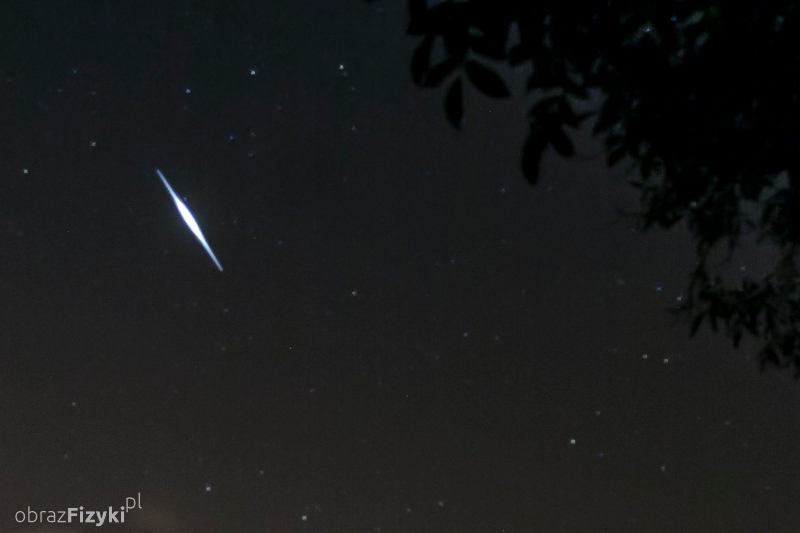 Zdjęcie poniżej przedstawia flarę Iridium zarejestrowaną 14 sierpnia 2016 roku o godzinie 2:27 w Alwerni. Zdjęcie można uznać za przypadkowe ponieważ tej nocy głównym celem było fotografowanie Perseidów. Zarejestrowany ślad, po pobieżnych oględzinach jeszcze w terenie na wyświetlaczu aparatu, został zakwalifikowany właśnie jako meteor. Dopiero na dużym ekranie monitora komputera, wyraźny symetryczny rozbłysk na zdjęciu wzbudził podejrzenia. Pierwotne przypuszczenie zostało zweryfikowane. Okazało się, po sprawdzeniu na stornie www.heavens-above.com, że to flara Iridium o jasności -4,7m utworzona przez przednią antenę satelity Iridium 75.